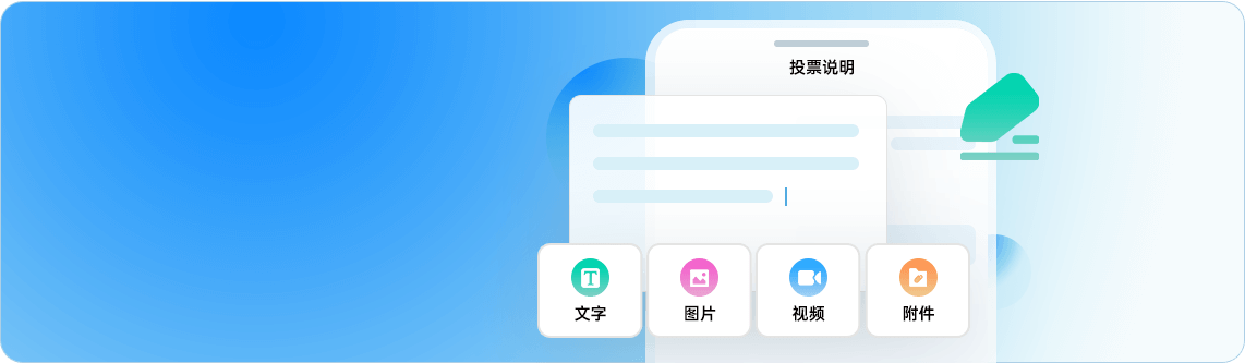 线上投票内容的排版、发布,支持图文、视频、附件等多种题型